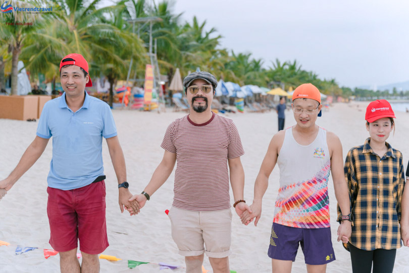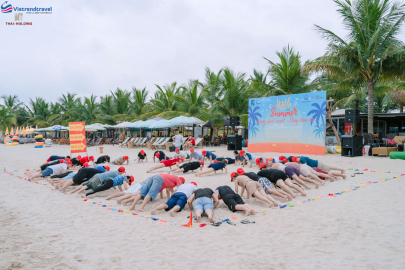 Hình ảnh nhân viên của Thái – Holding tham gia trò chơi tại bãi biển đầy nhiệt huyết